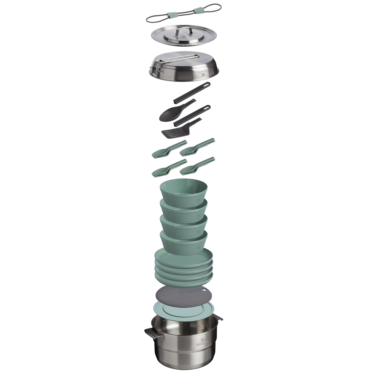 The Wildfare Core Fry Pan Cookset is a fully stocked kitchen, packed up neatly to go. This 26-piece set includes a 4-quart pot, 8-inch tri-ply fry pan, cooking utensils, and nonslip cutting board with a removable trivet. The four-person tableware set includes high-walled plates, stacking bowls, and dual-end cutlery for outdoor hosting with the comfort of home — everything you’d expect from a thoughtfully designed stainless steel cookware set for adventure-ready cooking.