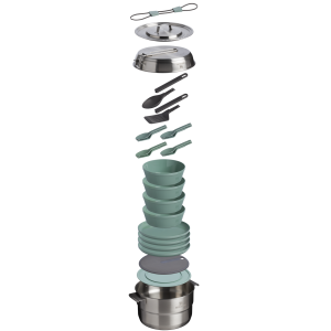 The Wildfare Core Fry Pan Cookset is a fully stocked kitchen, packed up neatly to go. This 26-piece set includes a 4-quart pot, 8-inch tri-ply fry pan, cooking utensils, and nonslip cutting board with a removable trivet. The four-person tableware set includes high-walled plates, stacking bowls, and dual-end cutlery for outdoor hosting with the comfort of home — everything you’d expect from a thoughtfully designed stainless steel cookware set for adventure-ready cooking.